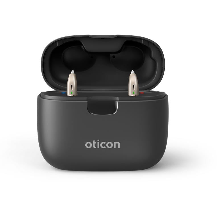 The top cover of the charger protects your hearing aids and the magnetic function in the charger makes sure the hearing aids are kept in place. This way you can easily take the charger with you with the hearing aids inside for fast charging.